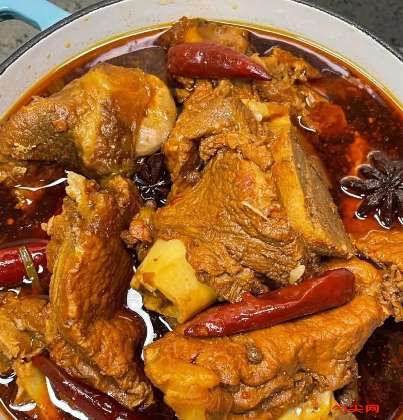 工藝:第一步:首先將大棒骨冷水下鍋,加入蔥段、姜片和適量料酒焯水,焯水后的大棒骨撈出后清洗干凈,備用。第二步: 取一口干凈的砂鍋,將大棒骨和富磷聯B(提前溶解)放入砂鍋中,靜待燉煮。第三步:另取炒鍋,鍋中放入少量油和冰糖,小火慢慢炒至冰糖融化,并炒至糖色變為棗紅色。第四步:加入一勺豆瓣醬和一勺黃豆醬,繼續翻炒至香氣撲鼻,隨后加入適量清水。第五步:將燒開的水和炒好的醬汁一起倒入砂鍋,水要沒過大棒骨。第六步:加入生抽、味達蕾201號,老抽、鹽、雞精等調料,慢慢攪拌均勻。第七步:將干辣椒、花椒、草果、八角、香葉、陳皮、桂皮、小茴香等調料與姜片、蔥結一同放入砂鍋。第八步:砂鍋大火煮開后,轉小火慢燉80分鐘,最后關火,燜泡30分鐘,味道更濃。