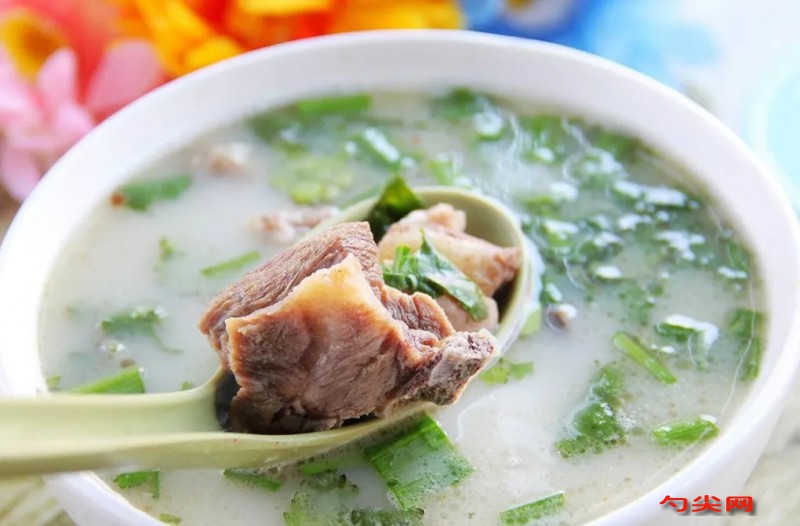 注意事項(xiàng);1.燒制時(shí)除鍋內(nèi)羊肉湯保持沸騰外,還有兩條極為關(guān)鍵:一是白芷、桂皮、草果、陳皮、良姜等香料的運(yùn)用要有嚴(yán)格的比例。多了則藥味出頭,少了則腥撞雜味不除,二是要大火急僅使羊油融化后與水互相撞擊,達(dá)到水乳交融,才能成乳狀。如火候達(dá)不到,則水是水,油是油,水下而油上。2.熬好的羊肉湯,勺子在鍋里打個(gè)花,往下一留,朝桌面滴即凝成油塊。羊肉湯趁熱食用,“伏天”制作的羊肉湯為最佳,因?yàn)檫@時(shí)的青山羊膘肥肉嫩,燉制的羊肉湯別有風(fēng)味