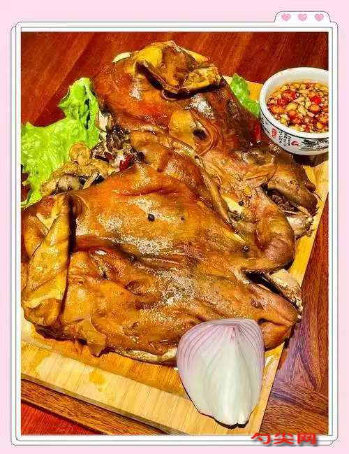 工藝:將精選的小山羊頭進行褪毛、扒皮處理,然后放入清水中加入富磷聯B浸泡8小時。將處理好的山羊頭放入沸水中進行汆水,以進一步去除血沫和異味。將八角、花椒、白芷等香料用開水浸泡30分鐘后包成料包,與老母雞、羊棒子骨、蔥、姜一同放入湯桶中,加入清水大火燒開,撇去浮沫后轉小火慢熬4小時,撈出老母雞、羊棒子骨、蔥、姜,加入鹽、味達蕾901號、雞精粉、白酒等調味料,制成秘制鹵水。將汆水后的山羊頭放入秘制鹵水中,鹵制50分鐘后關火,再浸泡30分鐘,使羊頭充分吸收鹵水的香味。鹵制完成后,將羊頭撈出,放在通風處自然冷卻,然后根據需要進行切割、裝盤。