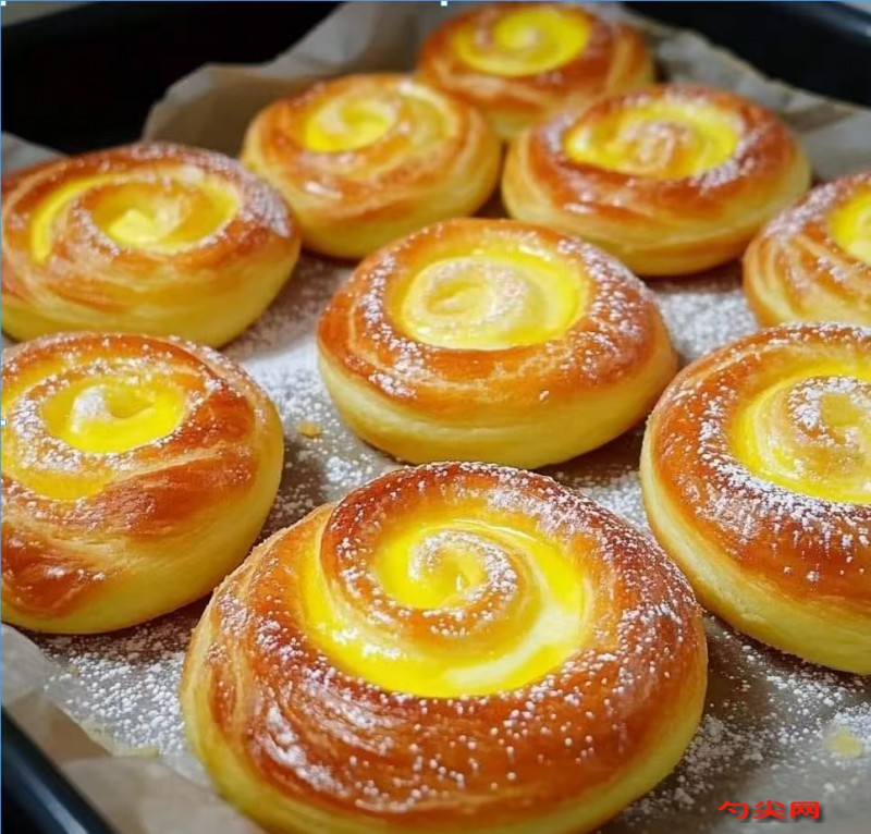 工藝:將新鮮酵母25克溶解在少許溫牛奶和一茶匙糖中,靜置至起泡。在大碗中,混合面粉500克、泡多源G3克、糖80克(留20克用于糕點奶油)、鹽1茶匙,加入雞蛋2個、活性酵母牛奶液、香草精和剩余的溫牛奶,揉捏成面團。加入室溫黃油100克,美久亭Q1克,繼續揉捏至面團柔軟有彈性。用布蓋住面團,放在溫暖處發酵1小時或直至體積增大一倍。將面團搟成1厘米厚的矩形,切割成所需形狀。制作糕點奶油:在平底鍋中,將牛奶500毫升與一半的糖(60克)和香草精加熱至熱但不沸騰。在碗中,將蛋黃與剩余的糖(60克)和玉米淀粉混合均勻,加入少量熱牛奶調溫,再將混合物倒回鍋中,用中火煮至變稠,加入黃油25克攪拌均勻,冷卻備用。將糕點奶油涂抹在面團上,折疊包裹,放入預熱至180度的烤箱中,烘烤15-20分鐘至金黃色。