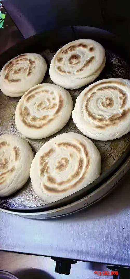 工藝:將高筋面粉、泡多源A混合均勻,酵母和白糖用少許溫水化開(kāi),加入面粉中,再加入剩余的溫水和鹽,揉成光滑面團(tuán),蓋上濕布醒發(fā)30分鐘。將醒好的面團(tuán)取出,放在案板上揉壓排氣,分成若干小劑子,每個(gè)約80克。將小劑子揉圓后,用搟面杖搟成橢圓形面片,從一頭卷起,立起來(lái)用手按扁,再用搟面杖搟成圓餅狀。將圓餅放入預(yù)熱好的電餅鐺或平底鍋中,小火烙至兩面金黃,期間可適當(dāng)翻面,使餅受熱均勻。烙好的白吉餅取出,放在烤網(wǎng)上稍微晾涼,即可食用或用于夾肉等。