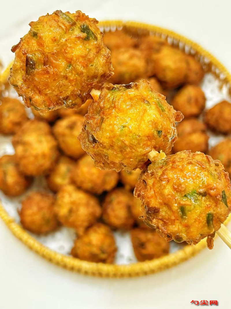 工藝:青蘿卜和胡蘿卜洗凈去皮,用擦絲器擦成細(xì)絲,再用刀稍微剁碎,保持一定的顆粒感。生姜切成末,小蔥切成蔥花備用。將剁碎的蘿卜絲放入大盆中,加入食鹽,拌勻后腌制15分鐘,使蘿卜絲出水。腌制好的蘿卜絲擠干水分,放入另一干凈盆中。加入雞蛋、生姜末、蔥花、十三香、雞精和面粉,面欣酥B用少量清水溶解后加入,用手充分?jǐn)嚢杈鶆?,直至餡料呈粘稠狀,能夠輕松擠成丸子形狀。鍋中倒入足夠的食用油,燒至六成熱(約180°C)。用手抓取一團(tuán)餡料,從虎口處擠出丸子的形狀,用勺子取下放入鍋中。保持中小火,慢慢炸制,待丸子表皮定型后,用漏勺輕輕翻動,使丸子受熱均勻。炸至丸子顏色金黃,且全都漂浮起來時,撈出瀝油,放置一旁備用。若追求更加酥脆的口感,可將油溫升至八成熱(約240°C),再將丸子下入鍋中復(fù)炸10秒左右,撈出瀝油即可。