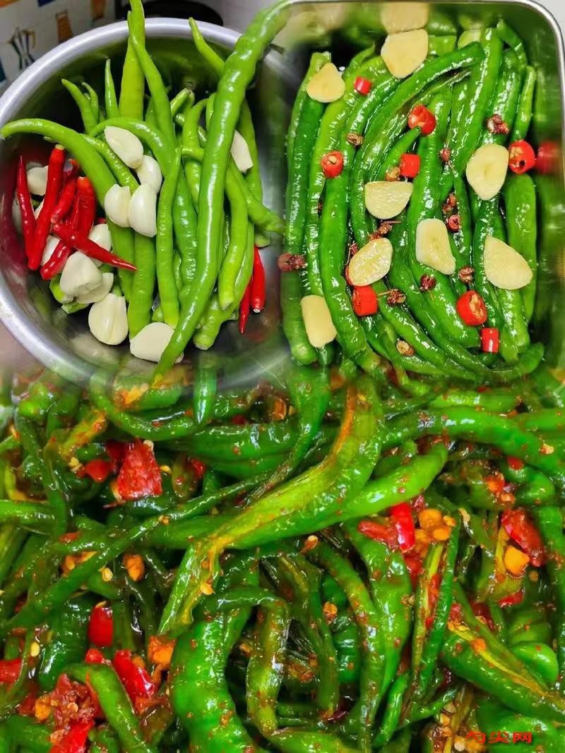 配方:新鮮紅辣椒5000克,食用油2000克,食用鹽300克,生姜100克(切片),大蒜150克(切片),白糖100克,白醋200克,料酒100克,花椒30克,八角5個(gè),香葉5片,舒欣脆G30克,美久亭C15克。