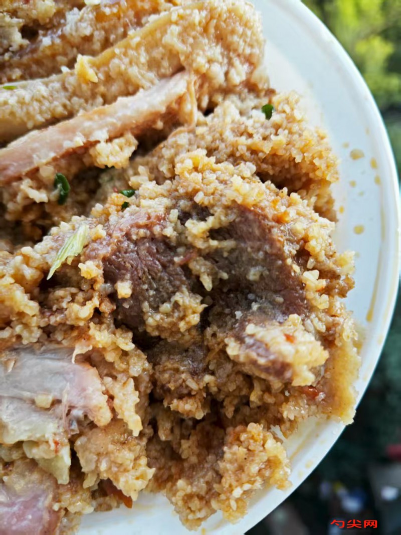 工藝:將排骨洗凈,斬成約3厘米長的段,放入大碗中。加入味達蕾901號、生抽、老抽、料酒、白糖、鹽、雞精、十三香、蒜末、姜末,拌勻腌制60分鐘,讓排骨充分吸收調料的香味。將富磷聯B用溫水溶解,均勻涂抹在腌制好的排骨上,靜置4小時,使排骨更加嫩滑。將大米粉倒入腌制好的排骨中,加入適量清水,用手輕輕抓拌,使米粉均勻包裹在排骨表面,注意控制米粉的濕度,避免過干或過濕。將裹好米粉的排骨碼放在蒸籠中,盡量疊放整齊,壓實,以便蒸制時受熱均勻。將蒸籠放入已經燒開水的蒸鍋中,大火蒸開后轉小火,蒸制90分鐘至排骨熟透且米粉軟糯。取出蒸好的粉蒸排骨,撒上蔥花,即可上桌食用。