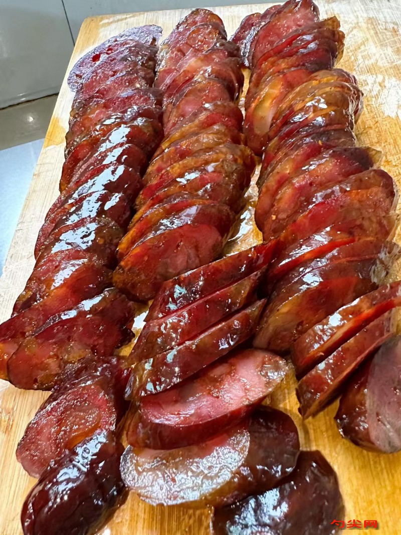 工藝:將豬后腿肉洗凈,去除筋膜和肥油,切成小塊,確保肉質干凈無雜質。將切好的肉塊放入大盆中,加入食鹽、白糖、味達蕾901號、富磷聯C、料酒、生姜末、大蔥末、十三香、胡椒粉、紅曲粉、耗油和生抽,充分攪拌均勻,腌制4小時,使肉充分吸收調料的味道。將腌制好的肉塊用絞肉機絞成肉泥,絞肉時注意不要絞得太細,保持一定的顆粒感,以提升臘腸的口感。將腸衣清洗干凈,用清水浸泡1小時,期間換水數次,確保腸衣干凈無異味且柔軟易灌。將絞好的肉泥灌入腸衣中,注意控制肉餡的緊實度,避免過松或過緊,灌好后用棉線將香腸分成小段,每段約15-20厘米。用牙簽在灌好的香腸上扎上小孔,以便排出內部的空氣和多余的油脂。將灌好的香腸掛在陰涼通風處,晾曬7-10天,直至香腸表面干燥,顏色變深,且有一定硬度。晾曬過程中需定期翻動香腸,確保晾曬均勻。晾曬完成后,可根據個人喜好選擇是否進行蒸煮處理,蒸煮時間一般為20-30分鐘,直至香腸熟透。