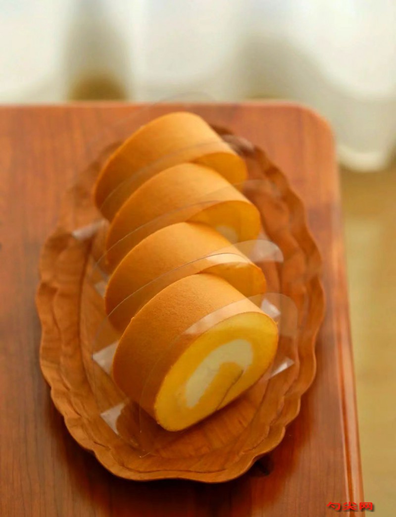 工藝:將雞蛋的蛋黃與蛋白分開,蛋白中加入塔塔粉,打發(fā)至細(xì)膩有光澤,提起打蛋器有小尖角。蛋黃中加入白糖、玉米油和牛奶,攪拌均勻。將低筋面粉與泡多源G、美久亭Q混合均勻后篩入蛋黃液中,輕輕翻拌均勻。將打發(fā)好的蛋白分三次加入面糊中,每次加入后都要輕輕翻拌均勻,避免消泡。將面糊倒入鋪有油紙的烤盤中,用刮刀抹平,摔幾下烤盤以排出面糊中的大氣泡。預(yù)熱烤箱至160度,將烤盤放入烤箱中層,烤約15-20分鐘,至表面金黃且完全熟透。取出烤好的蛋糕片,趁熱撕去油紙,在表面涂上一層薄薄的淡奶油,然后利用搟面杖將蛋糕片卷起成O形,定型后切片即可。