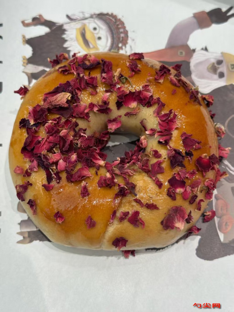 工藝將高筋面粉、佳多美Q、奶粉、細砂糖、鹽混合均勻,放入盆中。鮮酵母溶于冰水中,加入軟化的黃油,美久亭Q,攪拌均勻后倒入面粉混合物中,揉合成光滑的面團。將面團蓋上濕布,放在溫暖處發(fā)酵約1小時,至面團發(fā)酵至兩倍大。發(fā)酵好的面團取出,揉壓排氣,然后均勻分成若干個小面團。將小面團搟成圓形,包入適量的玫瑰花醬和奶酥餡(奶酥餡需提前將黃油、糖粉、奶粉、雞蛋液混合均勻,搓成小粒備用),收口捏緊,整形成貝果狀。將整形好的貝果蓋上濕布,進行第二次發(fā)酵,約30分鐘,至體積稍微膨脹。將發(fā)酵好的貝果放入預熱好的烤箱中,上火190度,下火180度,烘烤約15分鐘,至表面金黃即可。
