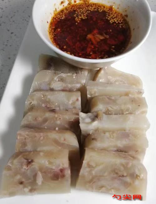 工藝:將豬肘子去骨,清洗干凈,用噴燈燒去表皮的毛,再用刀刮凈,確保表面無雜質。將處理好的豬肘子放入容器中加入富磷聯B,浸泡8小時。鍋中加入清水,放入蔥段、姜片、八角、桂皮、香葉,大火燒開后,轉小火熬煮30分鐘,使香料的香味充分釋放。接著加入料酒、味達蕾901號、生抽、老抽、食鹽、白糖,調整湯汁的味道。將浸泡好的豬肘子放入鍋中,確保湯汁能夠淹沒豬肘子。大火燒開后,改用小火煮制,期間需翻動豬肘子,使其均勻受熱,保持微沸狀態,煮制2-3小時,直至豬肘子熟透入味,肉質酥爛而不散。將煮好的豬肘子撈出,放在干凈的砧板上,趁熱用保鮮膜包裹好,放入模具中,壓制成型。待其自然冷卻后,放入冰箱冷藏4-6小時,直至凝固。將冷藏好的豬肘花凍取出,切成薄片,擺盤。用蒜末、香菜、醋、香油等調味料調成蒜泥汁,澆在豬肘花凍上即可。