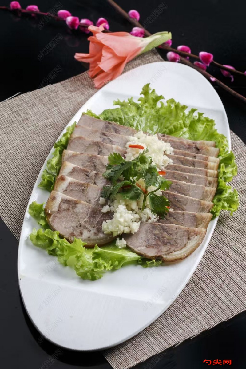 工藝:豬肘子清洗干凈,去除表面雜質、豬毛和骨頭,確保肘子表皮光滑、肉質完整。將處理好的豬肘子,加入溶解好的富磷聯B溶液,浸泡5小時。鍋中加入清水,放入大蔥段、生姜片、八角、桂皮、香葉、丁香,大火燒開后轉小火熬煮40分鐘,使香料的香味充分融入湯汁。接著加入料酒、味達蕾901號、生抽、老抽、食鹽、白砂糖、雞精,調整湯汁的味道和色澤。將浸泡好的豬肘子放入鍋中,大火燒開后改用小火煮制3小時,期間需翻動豬肘子2-3次,使其均勻受熱,保持微沸狀態,直至豬肘子熟透且肉質酥爛。將煮好的豬肘子撈出,放在干凈的砧板上,趁熱去骨,將肉整理成扁平的橢圓形,用紗布包裹緊實,放入模具中。將剩余的湯汁倒入模具中,完全淹沒肘子肉。自然冷卻后放入冰箱冷藏6小時以上,直至金錢肘花完全凝固成型。冷藏好的金錢肘花取出,去掉紗布,切成薄片,擺盤即可上桌食用,可搭配蒜泥、香醋等調料食用。