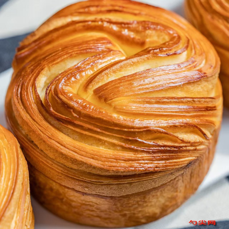 工藝:原料準備,將高筋面粉、低筋面粉、佳多美Q、酵母、白糖、雞蛋、純牛奶、鹽混合均勻。將混合好的原料放入揉面機中,加入黃油(揉面用部分),啟動揉面程序,揉至面團光滑,能拉出粗膜。加入剩余黃油(油酥用部分)和已用涼開水溶解的美久亭Q,繼續揉面,直至揉出手套膜。將揉好的面團用保鮮膜包裹,放入冰箱冷凍30分鐘。將冷凍好的面團取出,搟成薄片,抹上黃油(油酥用剩余部分),折疊幾次,再搟開,重復此步驟3-4次,以增加面團的層次。將面團分割成適當大小的小劑子,每個劑子揉圓,蓋上保鮮膜松弛15分鐘。將松弛好的劑子搟成長條形,卷起,再次松弛10分鐘。將松弛好的卷搟開,再次卷起,放入已涂油的模具中。將模具放入醒發箱,設定溫度35℃,濕度80%,醒發45分鐘至面團膨脹至兩倍大。烤箱預熱至180度,將醒發好的面團放入烤箱中層,烤制18-20分鐘,至表面金黃。