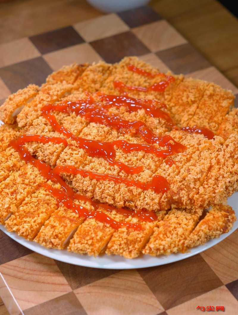 工藝:選用新鮮雞胸肉,將其片成0.5厘米薄片,用松肉針扎孔以便入味。將泡多源E20克、味達蕾901號4克、富磷聯B8克、美久亭A3克用數倍涼開水溶解,均勻加入肉片中,翻拌均勻后腌制50-60分鐘。腌制完成后,瀝干表面水分,加入適量的料酒、生抽、蠔油、蔥姜、食用鹽、胡椒粉進行調味,再加入2個雞蛋和適量淀粉,抓拌均勻后腌制半小時。將腌制好的雞排裹上一層面包糠,準備油炸。鍋中油燒至七成熱,放入雞排,中小火慢炸至金黃酥脆即可出鍋。
