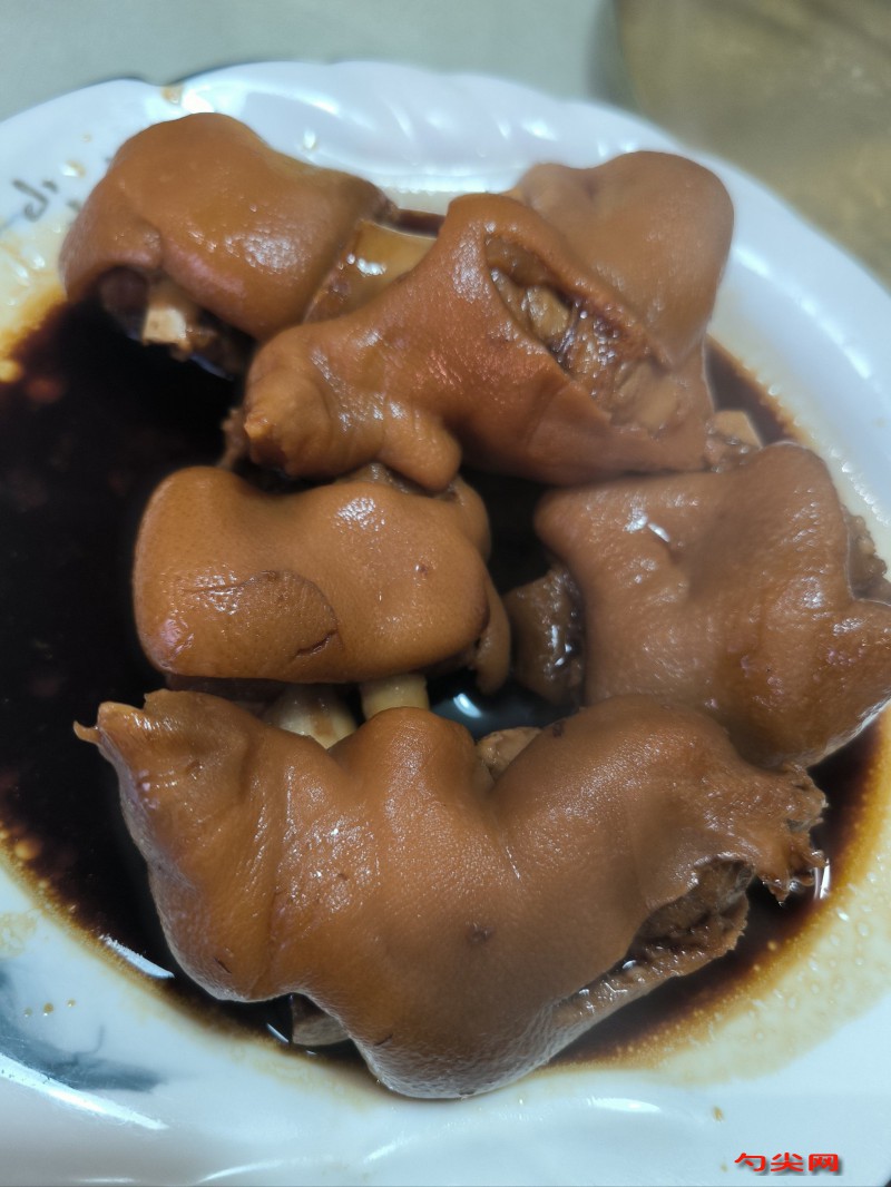 配方:豬手(豬蹄)2800克,富磷聯B20克,味達蕾901號10克,生姜60克(切片),大蔥2根(切段),料酒300毫升,生抽130毫升,老抽90毫升,白糖50克,八角6個,桂皮1段(約10克),香葉3片,草果1個(拍碎),丁香8粒,花椒10克,鹽適量,清水適量,食用油適量。