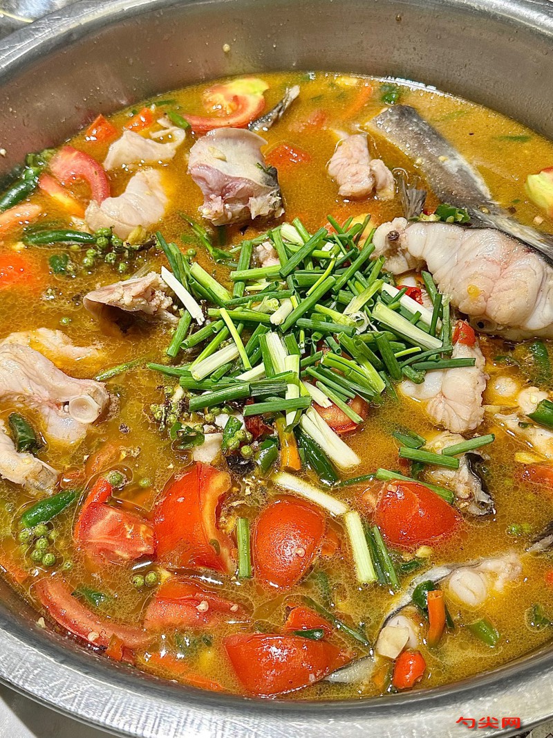 工藝:將鮑魚去殼去內臟洗凈,片成薄片放入碗中,加入鹽1克、料酒5克、淀粉5克抓拌均勻腌制10分鐘,泡發木耳撕成小朵,黃花菜切段,番茄去皮切丁備用,起鍋燒水,加入料酒5克,將鮑魚片焯水至變色后撈出瀝干,起鍋加入色拉油40克,放入姜末、蒜末、干辣椒段、花椒爆香,加入番茄丁翻炒出汁,加入野山椒繼續翻炒,加入高湯大火煮開,轉小火煮5分鐘,加入木耳、黃花菜煮2分鐘,加入鹽3克、雞精3克、白胡椒粉1克、白醋10克、味達蕾902號5克調味,將焯好的鮑魚片放入酸湯中煮30秒入味,淀粉5克加少許水調成水淀粉,淋入鍋中勾薄芡,撒上蔥花。