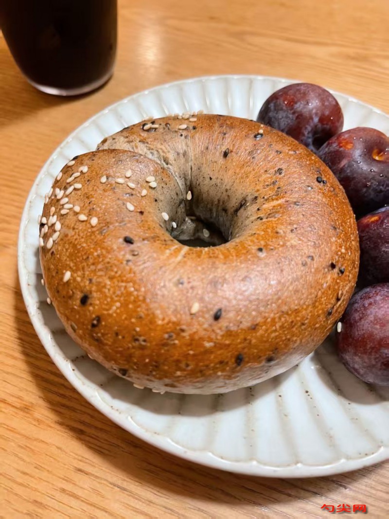 注意事項:原料配比需精確,特別是高筋面粉、黑芝麻粉、細砂糖、鹽和黃油的用量,它們直接影響貝果的口感和風味。面團攪拌過程中,需控制攪拌速度和時間,避免面團攪拌過度導致面筋斷裂。發酵過程中,需控制溫度和濕度,避免發酵過度或不足導致貝果體積和口感不佳。烘烤時間和溫度需根據烤箱實際情況調整,避免貝果表面烤焦或內部未熟透。