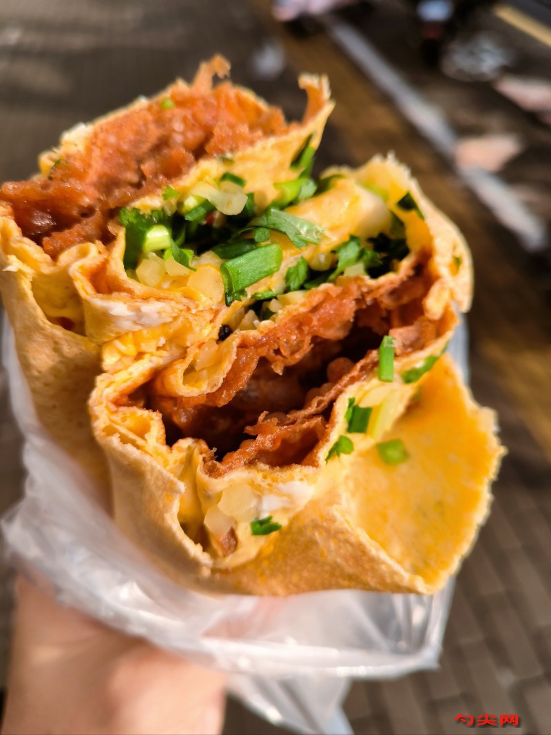工藝:將高筋面粉,泡多源C和黃豆粉混合均勻,酵母用溫水化開。將化開的酵母水倒入水中,攪拌均勻后倒入面粉中,使用電動攪拌器攪拌成面糊,然后靜置發酵一至三小時。再次攪拌均勻,形成煎餅糊。將鏊子或平底鍋燒熱,擦上適量油,倒入適量面糊,用刮刀迅速刮平。在煎餅上打上一個雞蛋,刮平。待煎餅底部煎至金黃色時,翻面繼續煎。在煎餅上刷上一層醬料,放上一片薄脆,然后加入生菜、豆皮、土豆絲和香腸等配料。根據個人口味再次刷上一層醬料,將煎餅折疊起來即可。