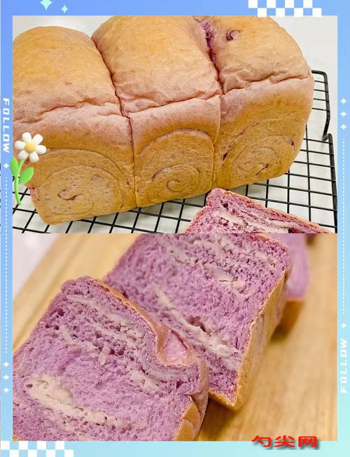 吐司注意事項:制作時需確保原料新鮮,特別是面粉、牛奶、雞蛋、芋頭和紫薯的品質。面團揉制時需充分均勻,避免有干粉或顆粒狀物質,確保面團的柔軟度和彈性。芋頭需提前蒸熟并壓成泥,以便更好地與面團融合。紫薯粉的用量可根據個人口味進行調整,以獲得所需的顏色和風味。發酵時需根據環境溫度和濕度進行調整,避免發酵過度或不足,影響吐司的口感和形狀。烘烤時需根據烤箱的實際情況調整溫度和時間,避免吐司烤焦或內部未熟透。