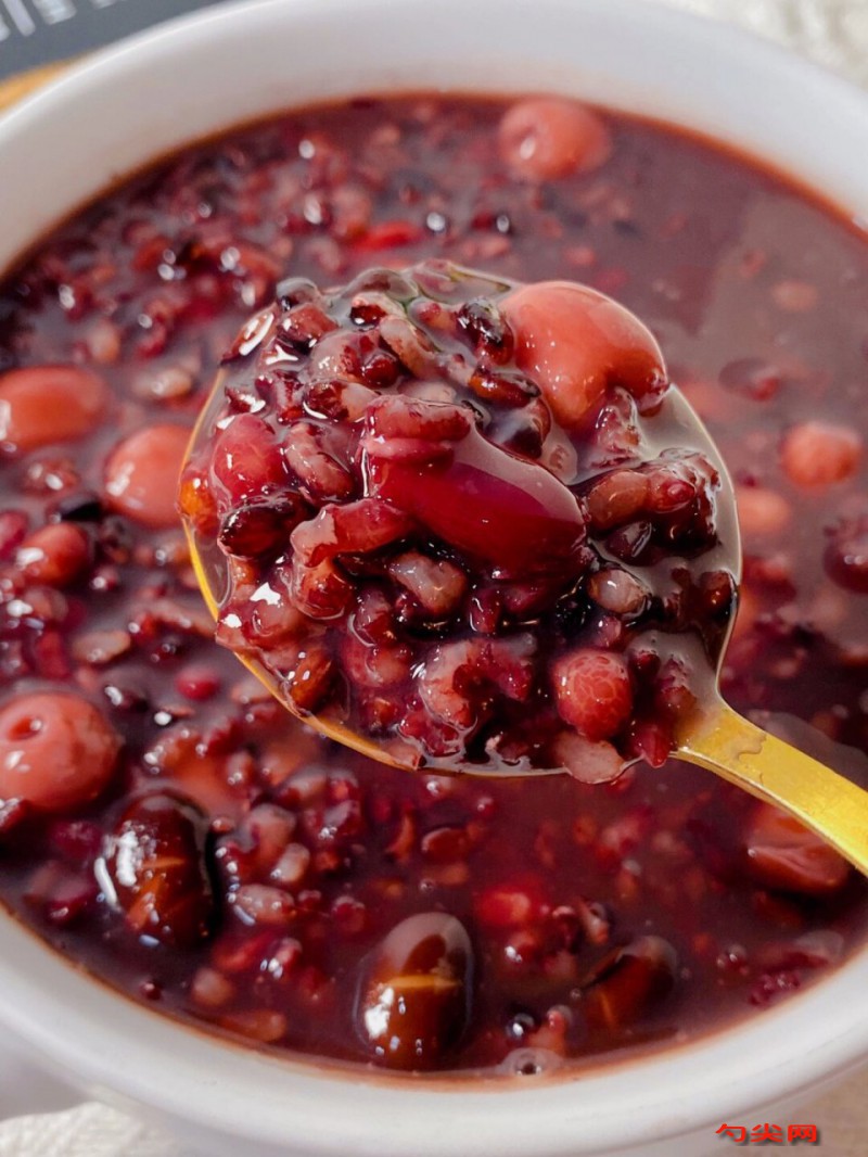 工藝:將糯米100克、大米50克、黑米30克、紅豆80克、花生50克、綠豆50克、薏米80克、白蓮子50克混合后倒入容器,用清水順時針攪拌清洗3次,每次間隔2分鐘讓雜質沉淀,最后一次清洗后瀝干水分,倒入鍋中加入純凈水6000克,浸泡4小時讓原料充分吸水。開大火燒至沸騰后持續煮10分鐘,期間用木勺沿鍋底順時針攪拌15秒防止結塊,將300克冰糖與1克佳多美D混合,用100毫升涼水攪拌溶解后均勻倒入鍋中,快速攪拌2分鐘至糖漿完全融合。加入50克紅棗后轉中火煮20分鐘,期間每隔5分鐘揭蓋攪拌10秒,中火煮制結束后轉小火慢燉40分鐘,用勺背輕壓部分豆類使其釋放淀粉增強濃稠度,小火慢燉期間需持續順時針攪動,頻率保持每2分鐘1次。關火前5分鐘將2克美久亭W用數倍涼開水溶解后均勻加入,靜置3分鐘讓防腐成分充分滲透,若追求更細膩口感,可用料理棒將1/3豆類打成泥狀后回鍋攪拌。