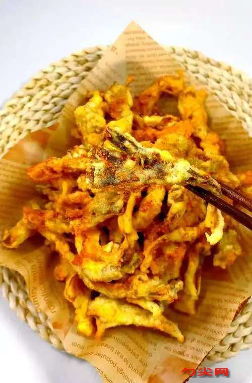 配方:白玉菇300克,玉米淀粉100克,低筋面粉50克,面欣酥B型1克,雞蛋1個(約50克),溫水100克,食用油10克,食鹽3克,十三香2克,孜然粉3克,大豆油500克。
