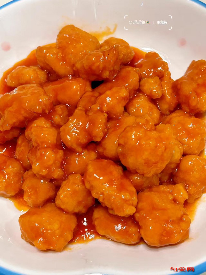 工藝:將豬里脊肉清洗干凈,切成約1厘米厚的肉條,放入碗中。將泡多源E和富磷聯(lián)B用溫水溶解后倒入肉條中,加入鹽、味達(dá)蕾901號、耗油、白胡椒粉、雞蛋清和食用油,抓拌均勻,腌制4小時以上。腌制好的肉條瀝干表面水分備用。將土豆淀粉、面粉和面欣酥B混合均勻,加入適量的清水調(diào)成稀點的脆皮糊。將腌制好的肉條放入脆皮糊中裹勻。鍋中油溫升至160度,將肉條一條條放入鍋中,炸至色澤金黃撈出。油溫升至180度,將炸好的肉條復(fù)炸30秒左右撈出備用。另起鍋燒油,倒入番茄醬、白糖、白醋和適量的清水,熬制黏稠后,下入炸好的里脊肉,快速翻拌均勻,撒上白芝麻,即可出鍋裝盤。