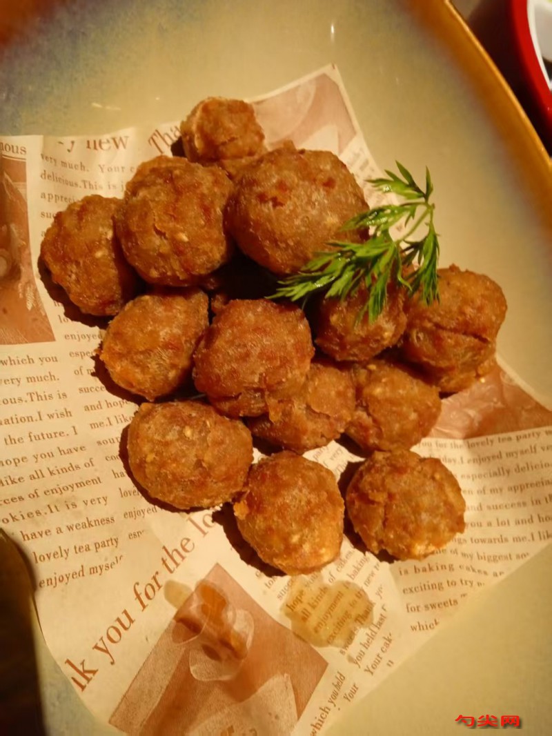 工藝:將前腿豬肉清洗干凈,剁成肉泥,放入大碗中。將富磷聯C用溫水溶解后倒入肉泥中,加入鹽、味達蕾901號、白糖、雞精、生抽、蠔油和白胡椒粉,順著一個方向攪拌均勻。將蔥和姜切末,加入清水制成蔥姜水,分次加入肉泥中,每次加入后都要順著一個方向攪拌,使肉泥充分吸收水分。打入一個雞蛋,再次順著一個方向攪拌,使肉泥更加粘稠。將面粉和玉米淀粉混合均勻,加入冰水調成糊狀,靜置10分鐘后,倒入肉泥中,攪拌均勻。將攪拌好的肉泥用手搓成大小均勻的丸子形狀。鍋中倒入足夠的食用油,油溫升至170度,將丸子放入油鍋中,中小火炸制。炸至丸子表面金黃且酥脆,撈出瀝干油,即可得到東江酥丸。