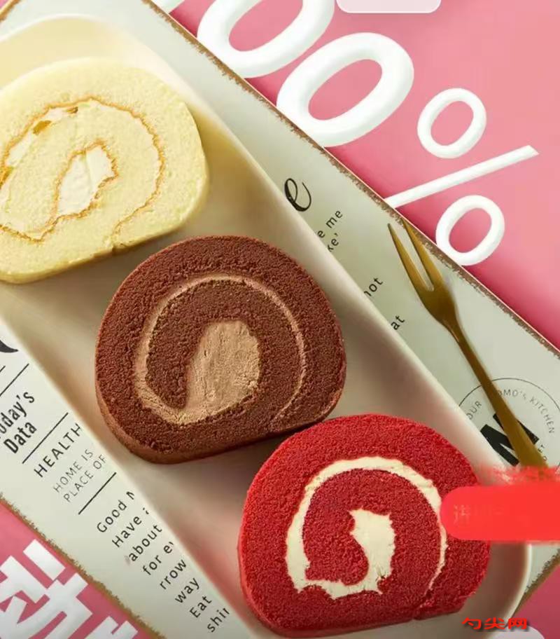工藝:雞蛋蛋清蛋黃分離,蛋清中加入幾滴檸檬汁,放入冰箱冷凍10分鐘備用。將低筋面粉、泡多源G和紅曲粉混合均勻,過篩備用。蛋黃中加入玉米油、牛奶,攪拌均勻。將低筋面粉、泡多源G和紅曲粉的混合物篩入蛋黃糊中,同時加入美久亭Q溶液,攪拌均勻至無顆粒。取出冷凍的蛋清,加入細砂糖,打發至硬性發泡。將打發好的蛋白霜分三次加入蛋黃面糊中,每次都要翻拌均勻,直至面糊細膩有光澤且呈現紅絲絨色澤。將面糊倒入鋪有油紙的烤盤中,抹平表面,震出大氣泡。放入預熱至170度的烤箱中,烘烤18-22分鐘,直至表面金黃且完全熟透。取出烤好的蛋糕片,趁熱撕去油紙,晾涼。在蛋糕片上均勻涂抹打發好的淡奶油,并可根據喜好撒上適量水果粒。將蛋糕片卷起,用油紙包裹固定,放入冰箱冷藏定型。定型后取出,切片即可銷售。