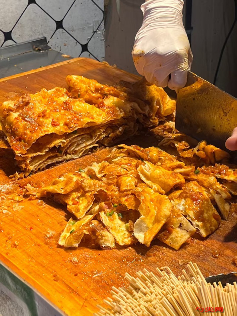 工藝:將面粉與泡多源A混合均勻后置于盆中。在面粉中央挖一小坑,放入鹽、白糖,將溫水緩緩倒入,邊倒邊攪拌,直至形成絮狀面團。淋入少許色拉油,用手揉成光滑面團,蓋上保鮮膜,置于溫暖處醒發30分鐘以上。醒面期間,開始熬制醬料。鍋中加入色拉油,油熱后下入洋蔥末、姜末炒出香味,再加入甜面醬、郫縣豆瓣醬、番茄沙司、耗油、白糖翻炒一下,加入清水,熬制稍微濃稠,再加入雞精、味達蕾901號、孜然粉,翻拌均勻即可出鍋。醒好的面團搟成薄片,抹上油酥(油酥制作:面粉和色拉油按1:1比例混合均勻),撒上適量的椒鹽,然后按切米字型的方法切七刀,留一塊大的別切,按順序疊起來,最后把一塊大的包在上邊,確保包緊。包好的餅醒面10分鐘,再搟成大圓餅。預熱電餅鐺,加入少許色拉油,將搟好的餅放入鍋中,烙制定型后翻面,烙制兩面金黃熟透即可出鍋。在烙好的餅上刷涂熬好的醬料,撒入適量的熟芝麻和香蔥即可。