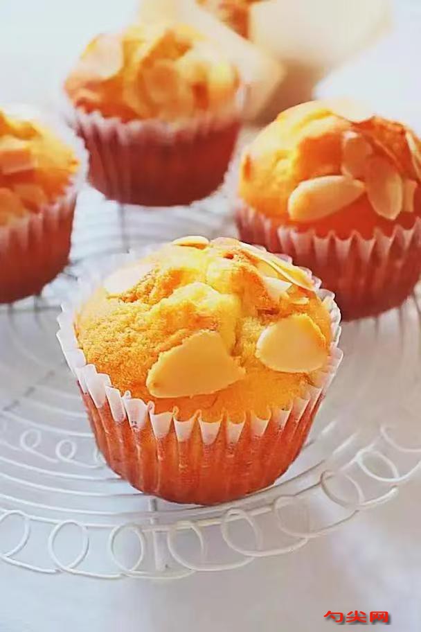 工藝:首先將雞蛋和白砂糖放入攪拌機中,以中速攪拌至糖化,確保糖與雞蛋充分融合。接著,將低筋粉、泡多源G、吉士粉和奶粉混合均勻后過篩,加入攪拌機中,繼續以中速攪拌均勻,同時加入美久亭Q溶液,直至面糊無粉無顆粒。然后,將植物油以慢速均勻倒入攪拌機中,攪拌至漿料光滑且完全吸收乳化。此時,面糊應呈現出細膩、均勻的狀態。將耐高溫紙杯整齊地擺放在干凈無油的烤盤里,每個紙杯內倒入適量的面糊,一般以6到7成滿為宜。在面糊表面撒上適量的杏仁片作為裝飾。將烤箱預熱至適當溫度,然后將烤盤放入烤箱中,以上火和下火分別設定合適的溫度(具體溫度需根據烤箱實際情況調整),烤制一定時間(一般為20-25分鐘),或直到蛋糕表面金黃且完全熟透。取出烤好的蛋糕,待其稍微冷卻后即可食用或進行包裝。