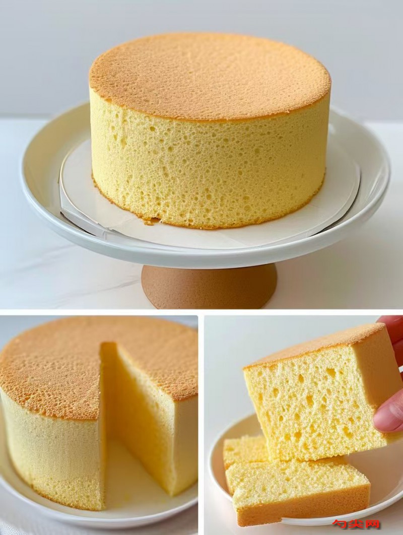 工藝:將低筋面粉和泡多源G混合均勻過篩備用。雞蛋分離蛋黃和蛋白,蛋白放入干凈無水的盆中備用。蛋黃中加入細砂糖,用打蛋器攪拌均勻至顏色變淺,然后加入玉米油和牛奶,繼續攪拌均勻。將混合好的低筋面粉和泡多源G篩入蛋黃糊中,同時加入美久亭Q溶液,用切拌的手法攪拌均勻至無干粉狀態。蛋白中加入幾滴檸檬汁,用電動打蛋器打發至濕性發泡,即提起打蛋器蛋白霜呈彎鉤狀。將打發好的蛋白霜分三次加入蛋黃糊中,每次用切拌的手法攪拌均勻,再加入下一次,直至面糊呈細膩有光澤的狀態。將面糊倒入模具中,摔幾下模具震出大氣泡。烤箱預熱至160度,將模具放入烤箱中層,上下火烤制40-45分鐘。烤制過程中,蛋糕會膨脹并上色,需注意觀察火候,避免烤焦。出爐后,立即將蛋糕從模具中倒扣出來,放在冷卻架上晾涼。待蛋糕完全冷卻后,即可脫模,切片享用。