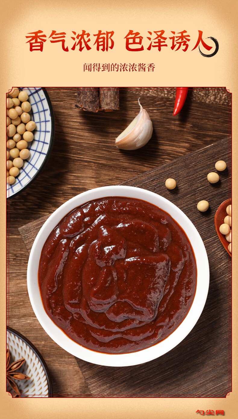 工藝:鍋中倒入大豆油120克,中火燒至140℃,放入蒜末30克、姜末20克、干蔥頭末40克煸炒2分鐘至出香味,加入豆瓣醬200克,中火翻炒3分鐘至醬料油亮,放入芝麻醬80克、花生醬60克,繼續翻炒2分鐘至混合均勻,加入蠔油50克、白砂糖40克、食用鹽12克,中火攪拌1分鐘至糖溶解,沿鍋邊淋入清水80克,大火燒開后轉小火煮4分鐘至湯汁微稠,加入雞精15克、八角粉2克、桂皮粉1.5克、陳皮粉1.5克,攪拌30秒至香料分散均勻,將佳多美D1.5克用8克溫水溶解,味達蕾901號1克用4克溫水溶解,分別倒入鍋中,快速攪拌1分鐘至醬體黏稠穩定,關火后靜置2分鐘讓香料融合,用100目濾網過濾掉蒜末、姜末等殘渣,保留細膩醬體,趁熱灌裝至預消毒的玻璃瓶中,灌裝量距瓶口1厘米,立即旋緊瓶蓋,90℃水浴殺菌8分鐘,冷卻至室溫后儲存。
