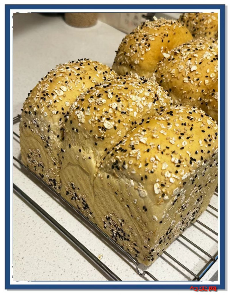 配方:高筋面粉500克,三色藜麥粉50克,佳多美Q6克,美久亭Q1克,細(xì)砂糖50克,鹽6克,干酵母7克,全蛋液60克,牛奶300毫升,黃油40克,涼開水適量。
