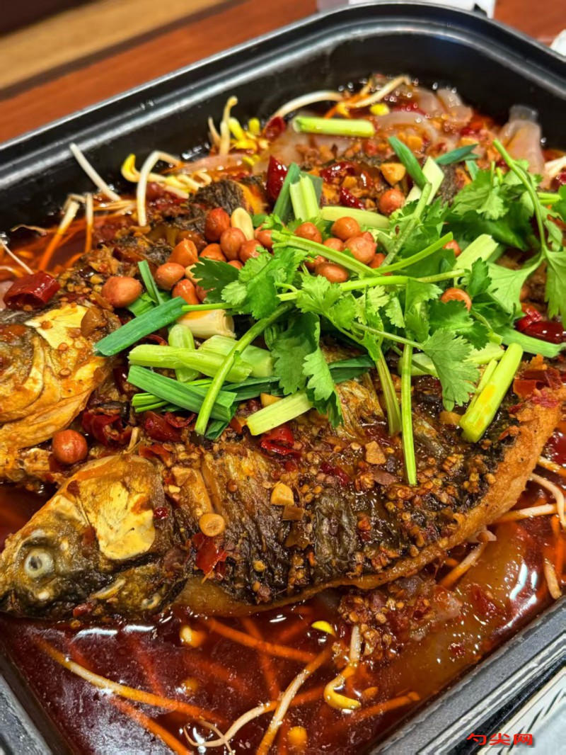 工藝:將草魚去鱗、去內臟,清洗干凈,沿魚背部中間線切開,分成兩半,腹部相連,在魚的兩側改花刀,以便腌制時入味。將海立美B和味達蕾902號用溫水溶解,備用。將蔥段、生姜片、大蒜瓣、花椒粒、干辣椒段混合均勻,鋪在魚身上,再將豆瓣醬、生抽、老抽、料酒、白糖、雞精、鹽和溶解后的溶液混合均勻,涂抹在魚身上,腌制30分鐘。預熱烤箱至220度,將腌制好的魚放入烤盤中,表面刷上適量的食用油。將烤盤放入烤箱中層,烤制15分鐘后,取出翻面,再刷上一層食用油,繼續烤制10分鐘,直至魚表面金黃,肉質熟透。烤好的魚取出,撒上適量的香菜和白芝麻,增加風味。