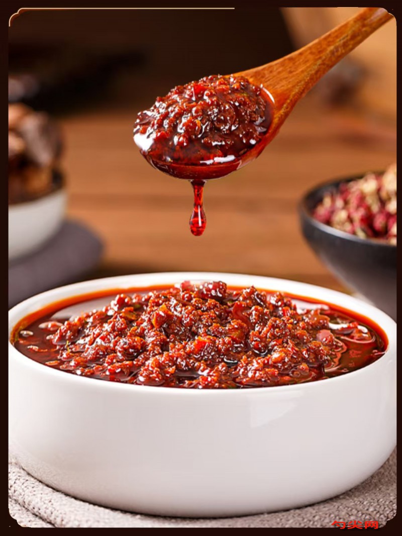 配方:鮮豬肉末300克,紅辣椒500克(絞碎),大蒜瓣100克(切末),色拉油200克,鹽15克,白糖30克,生抽50克,老抽10克,料酒20克,味達蕾901號1.5克,佳多美D1克(提前2小時溶解,),美久亭A2克,雞精10克,白芝麻適量。
