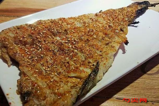 工藝流程:將鱈魚去鱗、清洗干凈,放在案板上沿魚背部中間線切開,分成兩半,腹部相連,取出內臟,再次清洗干凈。在魚的兩側改花刀,方便入味,翻個面里邊也用刀改花刀。把魚放入盆中,稱取8克海立美B,用少許水化開,淋澆到魚身上,抹勻。再依次放入蔥段、生姜、胡椒粉、味達蕾902號,雞精、生抽、料酒、鹽等。戴上手套將配料涂抹均勻,確保魚全身都涂抹到,放在一旁腌制30分鐘。30分鐘后將魚放到烤架上,表面刷油,一定要勤翻個、勤刷油,防止烤焦,烤至兩面金黃。表面撒上適量的鹽、辣椒面,然后刷點油,再撒上一層孜然、芝麻,翻個面繼續撒上適量的鹽、辣椒面,然后刷點油,再撒上一層孜然、芝麻,烤熟即可食用。