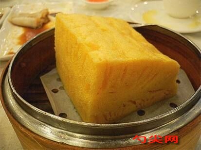 工藝:調制面團先取糕點粉250g,加酵面,泡多源Q,和適量水拌勻,靜置發酵;將小蘇打用少量水化開,倒入砂糖、雞蛋液和豬油攪勻,加入剩余糕點粉、適量水和發酵好的酵面團,混勻調制成面糊,再靜置醒發。蒸制將調好的面糊加堿面、乳酸鈣調勻,倒人蒸鍋,先用旺火蒸制10min,再用中火蒸10min。熟后倒出,稍冷切塊即可。蒸制時蒸汽要足,蒸籠蓋最好呈傘狀,以防冷凝水倒流在糕面上,影響質量。蒸熟后,糕體可脹發1倍以上,因此蒸籠內要留有足夠的空間。糕色乳黃,內心呈海綿狀,富有彈性。蛋香濃郁,松軟可口。