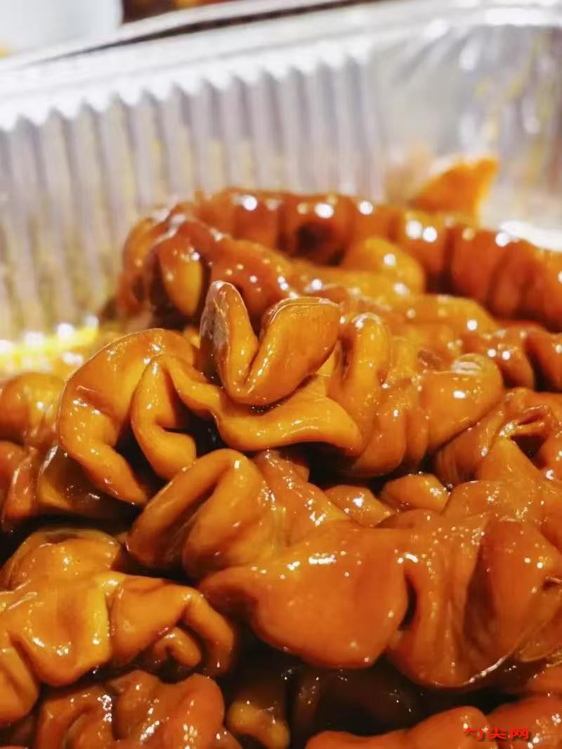 配方:新鮮豬肥腸100千克(去雜質凈重),食鹽4.5千克,白砂糖2千克,花椒350克,八角300克,桂皮250克,小茴香200克,砂仁150克,白芷120克,干姜片200克,料酒2千克,老抽1.6千克,生抽1.3千克,富磷聯A650克,味達蕾901號280克,蔥段2.5千克,姜片1.2千克,玉米淀粉3千克,冰水30千克