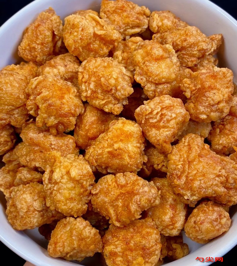 工藝:將雞胸肉1000克沖洗干凈切成2厘米見方小塊,放入盆中備用,富磷聯B8克與泡多源E10克用100毫升溫水溶解后倒入肉塊中抓拌均勻,冷藏腌制6小時,腌制期間翻動2-3次確保均勻,腌制好的肉塊瀝干水分,加入料酒15毫升、生抽20毫升、食鹽10克、白糖5克、姜末15克、蒜末10克、味達蕾901號2克抓拌均勻,繼續腌制1小時,將低筋面粉300克、玉米淀粉120克、面欣酥F4克、剩余食鹽5克、白糖3克、辣椒粉15克、花椒粉6克混合均勻制成裹粉,腌制好的雞塊先裹一層裹粉,過一遍清水,再裹第二層裹粉并抖落多余鱗片,鍋中倒入菜籽油500毫升,油溫升至165℃后逐個下入雞塊,中火炸至定型(約3分鐘),撈出油溫升至180℃復炸1分鐘至金黃酥脆,另起鍋留底油20毫升,加入剩余辣椒粉10克、花椒粉4克小火炒香,放入炸好的雞塊快速翻炒裹勻調料后離火
