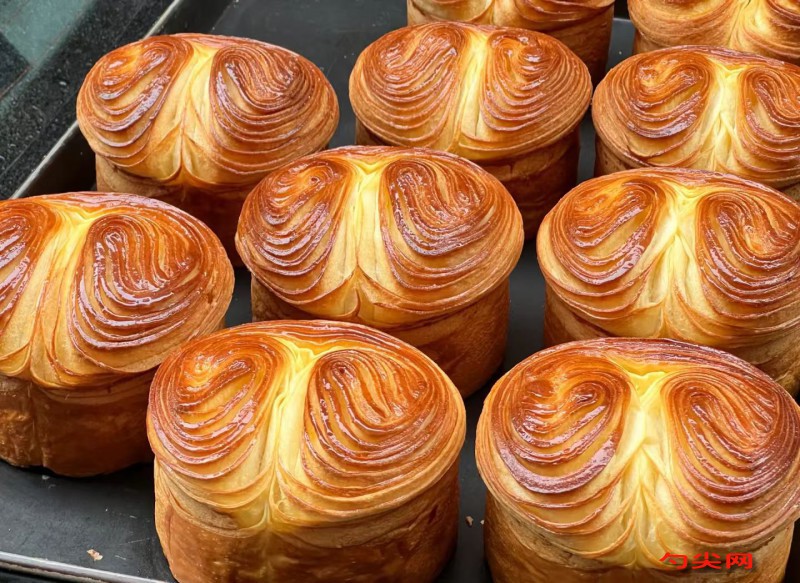 注意事項:面團攪拌時溫度控制在26℃以內(nèi),避免黃油過早融化影響層次,油酥制作時黃油需保持冷藏硬挺狀態(tài),否則易漏油,三次折疊操作需每次冷藏松弛20分鐘,防止面筋斷裂,擰麻花時力度均勻避免斷裂,二次醒發(fā)環(huán)境濕度需保持75%,防止表皮干裂,烤制前需在模具底部扎孔,防止底部積油,出爐后立即震模脫模,防止收縮,冷卻后需密封保存,防止水分流失導(dǎo)致口感干硬,未售完產(chǎn)品可冷凍保存,食用前150℃復(fù)烤5分鐘恢復(fù)層次。