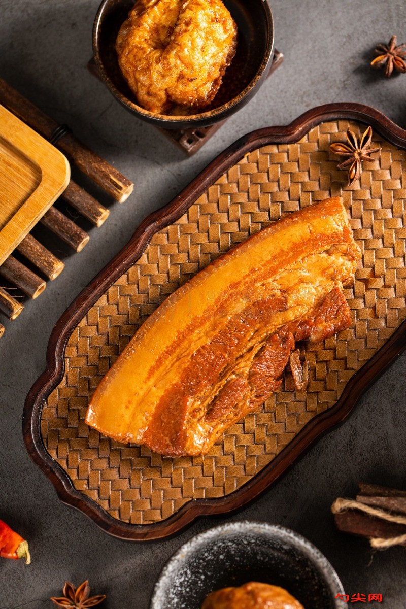 工藝:將1000克五花肉切成3厘米見方塊,2根大蔥切段,1塊生姜切片,8克富磷聯B用50毫升溫水溶解,五花肉塊放入盆中加富磷聯B溶液、50毫升料酒、50毫升生抽、4克味達蕾901號、20毫升老抽抓拌均勻腌制3小時,腌制好的五花肉塊放入1000毫升冷水大火煮沸撇浮沫,煮5分鐘撈出冷水沖洗瀝干,鍋中放10毫升油加30克冰糖小火炒至紅棕色,迅速加500毫升熱水攪勻制成糖色,焯水五花肉塊放入砂鍋加炒好糖色、大蔥段、生姜片、香料包和剩余1000毫升水,大火燒開轉小火慢燉1.5小時,燉煮過程根據口味加鹽調味,肉塊熟軟入味后大火收汁至濃稠關火