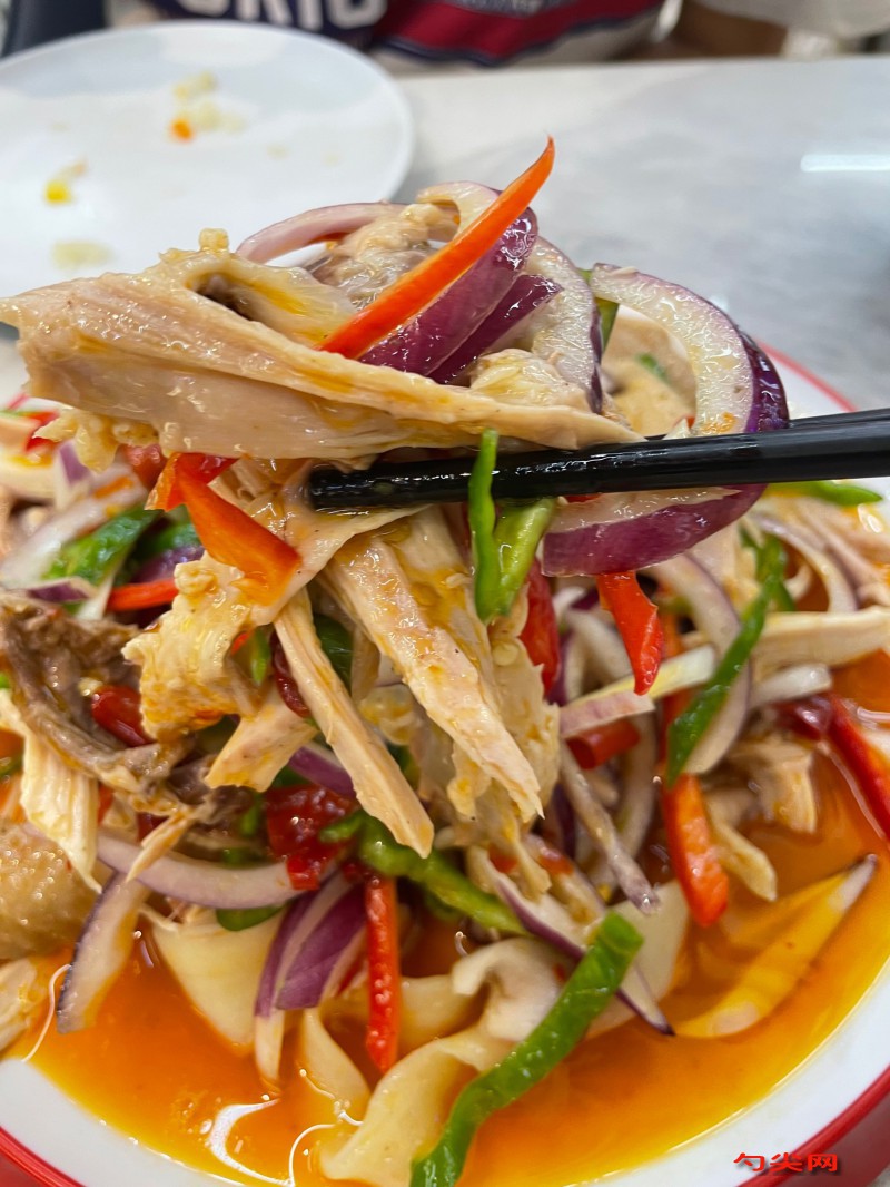 工藝:將1500克雞去骨后清洗干凈,50克小米椒切圈,50克青椒切圈,30克蒜切末,50克蔥切段,30克姜切片,12克富磷聯B用25克料酒化開均勻涂抹雞身內外,腌制20分鐘,鍋中加足量水放入腌制好的雞、蔥段、姜片,大火煮沸后撇凈浮沫,轉中小火煮18分鐘至筷子可輕松穿透雞身最厚處且無血水滲出,撈出雞立即放入冰水中浸泡12分鐘,浸泡好的雞瀝干水分切2厘米寬塊,花生米60克炸至金黃后去皮碾碎,鍋中倒入50克食用油燒至180℃,放入花椒粒15克炸出香味后撈出花椒,油中加入小米椒圈、青椒圈、蒜末、白芝麻12克爆香,關火后加入生抽35克、老抽12克、味達蕾901號6克、蠔油18克、香醋18克、白糖12克、鹽6克、雞精6克及少量煮雞原湯調勻成料汁,將切好的雞塊放入料汁中拌勻,撒上花生碎后冷藏腌制40分鐘