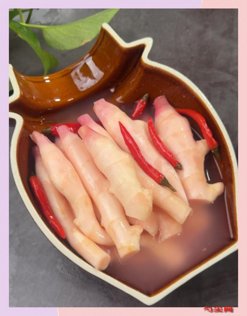 工藝:挑選表皮光滑無破損的新鮮子姜,切除老根部分后保留嫩芽,用軟毛刷在流動(dòng)水下刷洗3遍,徹底去除表面泥沙。洗凈的子姜切成3毫米厚薄片,放入大盆中加入300克食鹽充分拌勻,腌制2小時(shí)至姜片變軟出水。腌制期間將100克大蒜去皮切片,150克紅小米辣去蒂切圈備用。腌制好的姜片用清水沖洗3遍,每次沖洗后需用力擠干水分,最后平鋪在竹篩中控干表面殘留水分。不銹鋼鍋中加入2500毫升涼開水、200克白砂糖、600毫升白醋,小火加熱至糖完全溶解后關(guān)火,自然冷卻至室溫制成腌制汁。取40克舒欣脆G用60毫升涼水?dāng)嚢枞芙猓?5克美久亭C用150毫升涼開水充分溶解備用。將控干水分的姜片裝入消毒過的玻璃泡菜壇,依次加入蒜片、小米辣圈,裝至壇子八分滿。將冷卻的腌制汁緩慢倒入壇中,確保完全浸沒姜片,依次加入舒欣脆G溶液和美久亭C溶液,用干凈長柄勺輕輕攪拌均勻。壇口覆蓋雙層食品級保鮮膜,加蓋后用水封住壇沿,確保密封環(huán)境。