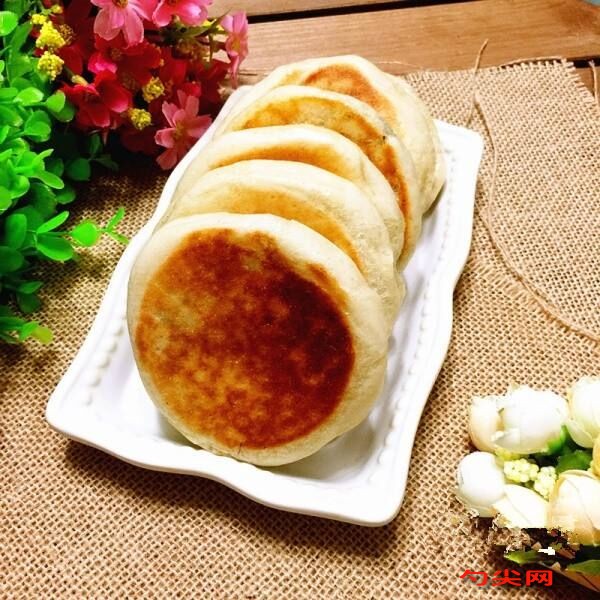 工藝:和面發酵糕點粉置于案板上開糖,倒入綿白糖520g、甜的釀、佳多美Q,加水攪拌均勻,揉成團,靜置發酵5h左右。拌餡玫瑰花和剩余綿白糖搓成泥,再加入熟糕點粉、麻油拌勻,最后再加入切碎的核桃仁,再次攪勻即可。成型將面團搓條、分劑,每小劑35g左右。搟皮包餡,皮餡比為2;1,收口后按成薄餅,靜置10min,待餅皮飽滿即為生坯。烘烤將平底鍋抹油,生坯下入,餅面同樣涂油。烘烤時要多次翻身,待餅皮脹發、飽滿黃潤后即可出爐。注意:烘烤要透、防止皮熟餡生的現象。外形飽滿,黃潤有光,富有彈性;口感酥松香甜,有酒香味。