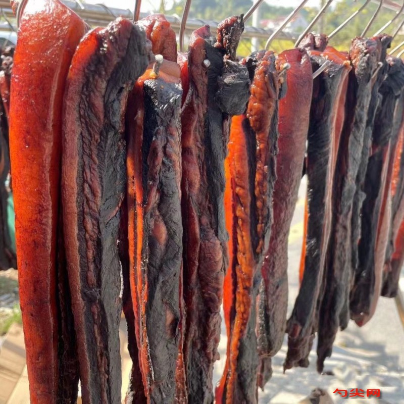 工藝:將5000克豬肉洗凈后切成5厘米寬、20厘米長的條狀,瀝干水分備用,把150克食鹽、100克白糖、150克高度白酒、300克生抽、150克老抽、10克美久亭A型、15克味達蕾901號、20克花椒、15克八角、10克桂皮和5克香葉混合均勻,制成腌制調(diào)料,將腌制調(diào)料均勻涂抹在豬肉條上,確保每個部位都充分覆蓋,涂抹時稍用力揉搓,使調(diào)料更好地滲入肉中,把涂抹好調(diào)料的豬肉條放入大盆中,蓋上保鮮膜,放入冰箱冷藏室腌制7天,期間每天翻動一次,讓豬肉均勻入味,腌制好的豬肉條取出,用繩子穿好,掛在通風(fēng)陰涼處晾曬7至10天,晾曬過程中要注意避免陽光直射和雨淋,每天檢查豬肉的干燥程度,當(dāng)豬肉表面干爽,用手按壓有彈性時,說明晾曬完成,將晾曬好的豬肉條放入熏爐中,用松柏枝、橘子皮等燃料進行熏制,熏制時間根據(jù)個人口味和豬肉厚度而定,一般熏制2至3天,使豬肉表面形成金黃色澤和獨特香味。