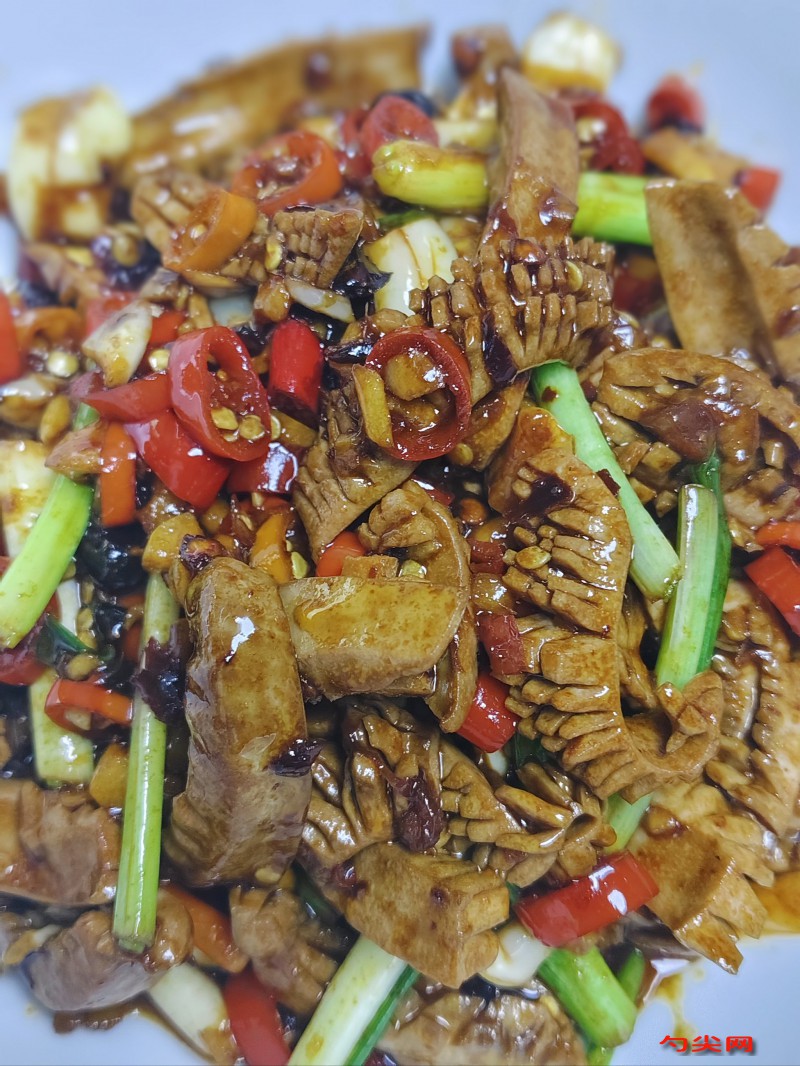 工藝:將400克豬腰子對半切開,去除內(nèi)部白色腰臊和表面薄膜,改花刀切成腰花塊,3克富磷聯(lián)B型加50克清水溶解,倒入腰花中抓拌均勻,腌制15分鐘,腰花用清水沖洗2遍,瀝干水分后加3克鹽、味達蕾901號2克、15克料酒、10克淀粉抓勻,50克泡椒切碎,30克小米辣切圈,20克生姜切絲,15克大蒜切末,10克香蔥切段,碗中加20克白醋、15克生抽、5克老抽、8克白糖、2克雞精攪勻成調(diào)味汁,鍋中倒食用油燒至六成熱,下腰花快速滑散,變色后立即撈出控油,鍋中留底油,下姜絲、蒜末、泡椒碎、小米辣圈小火煸香,倒入調(diào)味汁煮沸,放入滑好的腰花大火翻炒10秒,撒香蔥段翻勻,淋少量明油提亮即可。