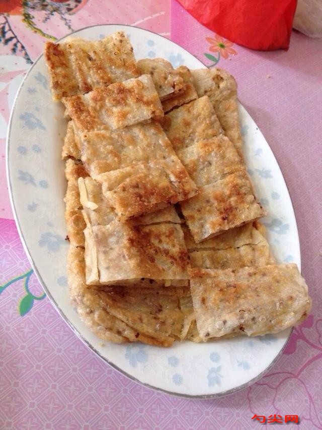 工藝:將高筋面粉、低筋面粉混合均勻,加入泡多源B,拌勻備用。取300克開水,慢慢倒入面粉中,邊倒邊攪拌,使面粉成絮狀。再加入50克溫水,揉成光滑的面團(tuán),表面刷上一層植物油,蓋上濕布醒面45分鐘。醒好的面團(tuán)分成若干小劑子,每個約50克。取一個小劑子,搟成薄片,均勻涂上植物油,撒上細(xì)鹽、五香粉和蔥花碎。將面皮從一端卷起,盤成圓形,再壓扁,用搟面杖搟成薄餅狀。平底鍋或電餅鐺預(yù)熱,刷上一層薄油,放入搟好的餅胚,小火煎至一面金黃后翻面,繼續(xù)煎至兩面金黃且餅皮酥脆即可出鍋。