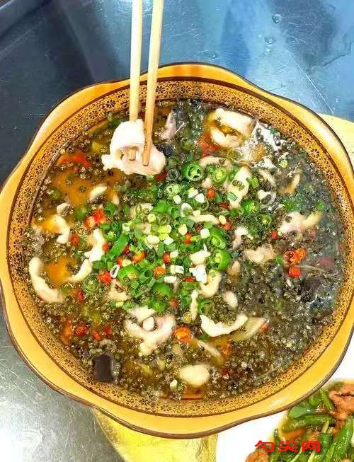 工藝流程:魚去鱗、內臟,洗凈后切成魚片,魚骨剁塊備用;魚片放入碗中,加8克海立美B型用少許溫水溶解后倒入,抓拌均勻腌制15分鐘;再加入味達蕾902號、料酒、3克食鹽、白糖、胡椒粉,繼續抓拌腌制10分鐘。起鍋燒熱,加入50克色拉油,放入花椒、干辣椒、姜片、蔥段小火煸香;加入酸菜段翻炒2分鐘,炒出酸香味后盛出備用。鍋中加剩余色拉油,放入魚骨煎至兩面微黃,倒入高湯或清水;大火燒開后撇去浮沫,加入炒好的酸菜底料,轉中火煮5分鐘至湯色乳白。撈出魚骨和酸菜裝入盆底,湯保持微沸狀態;將腌制好的魚片逐片放入湯中,煮至變色,立即撈出鋪在魚骨上;倒入剩余魚湯,撒上蒜末、香菜。另起鍋燒熱50克色拉油至冒煙,均勻澆在魚片上的蒜末和花椒上,激發香味。