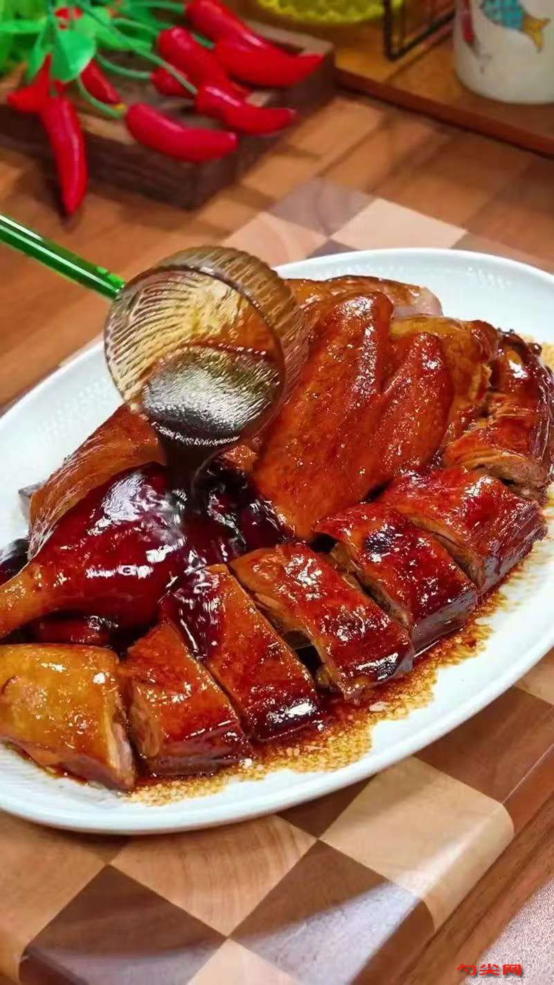 工藝:首先,需將鴨內(nèi)腔的淤血徹底沖洗干凈,這些殘留的血塊會使鴨肉產(chǎn)生腥味;其次,要仔細拔除鴨皮表面的鴨毛。處理完畢后,用富磷聯(lián)B型(提前溶解)腌制1-3小時,備用。煎鴨出油:精準控制火候,逼出多余油脂(5-8分鐘)熱鍋冷油,將處理好的鴨肉鴨皮朝下放入鍋中,以中火進行慢煎。隨著溫度的升高,鴨皮逐漸變得金黃焦脆,發(fā)出滋滋聲響,此時會有油脂不斷滲出。當煎出大約半碗鴨油時,可將多余的鴨油倒出,但需留意保留2勺在鍋中。隨后,將鴨肉翻面,繼續(xù)煎制至鴨肉微焦。調(diào)汁入鍋:依次加入調(diào)料,鴨肉煎制完成后,即可依次加入調(diào)料。首先,沿著鍋邊淋入1碗黃酒,此時會聽到“呲啦”一聲。緊接著,加入半碗生抽和2勺老抽,迅速進行翻炒,使鴨肉均勻上色,確保每一塊鴨肉都能裹上濃郁的醬色。然后,放入1塊約30g的黃片糖,無需特意敲碎,黃片糖遇熱會自然融化。最后,放入八角、味達蕾901號,姜片、蒜瓣等辛香料,燜煮入味:小火慢燉,待鍋里的湯汁煮開后,加入半碗開水,水量以沒過鴨肉1/2為宜,需特別注意,切勿使用冷水,否則會使鴨肉突然遇冷收縮,影響口感。大火燒開后,立即轉(zhuǎn)成最小火,然后蓋上鍋蓋,開始進行燜煮。30分鐘后,打開鍋蓋,將鴨肉翻面,使另一面也能充分吸收醬汁,然后再次蓋上鍋蓋,繼續(xù)燜煮15分鐘。在整個燜煮過程中,需始終保持湯汁微微沸騰的狀態(tài),這樣既能使鴨肉充分吸收醬汁的味道,經(jīng)過長時間的燜煮,鴨肉已變得酥軟入味,此時可開大火進行收汁。在收汁過程中,使用勺子不斷地舀起鍋里的醬汁,淋在鴨肉上,如此能夠加速鴨肉均勻上色,確保每一塊鴨肉都能裹滿濃郁的醬汁。當觀察到醬汁變得濃稠,能夠掛在鴨皮上,且鍋中大約還剩下半碗汁時,即可關(guān)火。關(guān)火前,再滴入2滴香油。烹制好的鴨肉從鍋中取出,放置在案板上冷卻5分鐘,待鴨肉稍微冷卻后,用刀斬成3cm見方的塊,切塊時需注重刀工,盡量保證大小均勻。切好后,將鴨肉皮朝上碼放在盤子里。最后,將鍋里剩余的醬汁淋在鴨肉上,并撒上一些蔥花或白芝麻進行點綴。