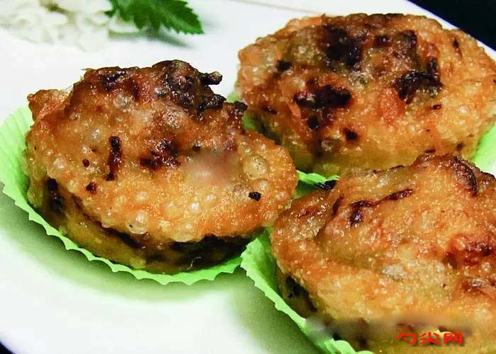 工藝:將糯米粉和粳米粉、泡多源K混合均勻,加入適量的溫水,邊加邊攪拌,揉成光滑且稍軟的面團。將豬肉末、竹筍丁、豆腐干丁放入碗中,加入鹽、白糖、醬油、料酒、蔥花,攪拌均勻,制成餡料。取一小塊面團,搓圓后壓扁,放入適量的餡料,包裹起來,再次搓圓,然后輕輕按扁,成油墩兒生坯。鍋中倒入足夠的食用油,大火燒至五成熱時,放入油墩兒生坯,中小火炸制。炸至油墩兒表面金黃且熟透,撈出瀝油,即可食用。