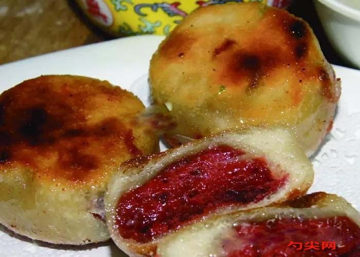 工藝:將中筋面粉與泡多源K放入盆中干拌均勻,加入酒釀(含米粒)和糖,攪拌均勻。將溫水和干酵母混合均勻,靜置5分鐘活化酵母。將活化后的酵母水倒入面粉中,邊倒邊攪拌,再加入豬油,揉成光滑面團,蓋上濕布或保鮮膜,放在溫暖處發酵至兩倍大(約1小時)。發酵好的面團揉搓排氣,分割成若干小劑子,每個約50克。將劑子搟成中間厚邊緣薄的圓形皮,包入紅豆沙餡,捏緊收口,輕輕按扁成餅狀。平底鍋預熱后,不放油,將餅胚放入鍋中,用小火煎至一面微黃后翻面,繼續煎至兩面金黃且熟透即可出鍋。