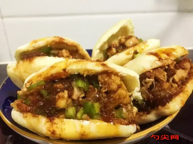 工藝:將高筋面粉、白砂糖、酵母、面欣酥A型放入盆中,加入水和食用油,攪拌成絮狀,然后揉成光滑的面團。蓋上保鮮膜,醒發至兩倍大(約1小時)。取一個小碗,加入面粉、熟油和鹽,攪拌均勻,調成稠一點的油酥備用。醒發好的面團取出,揉面排氣,揉至原來的大小。整理成長條,切成大小相等的面劑(約50克每個)。把所有面劑揉圓揉光滑,蓋上保鮮袋,防止風干。取最先揉好的面劑,先用手按扁,再用搟面杖搟薄,中間均勻涂抹上油酥,像包包子一樣包起來,收口捏緊,防止漏氣。案板上撒一點面粉防粘,用搟面杖把包好油酥的面團搟薄,翻過來也搟一下,使兩側面皮薄厚均勻。電餅鐺預熱,放入餅皮,烙至表面鼓起小泡,翻面烙制餅微微鼓起,再次翻面,然后取出放入烤盤內。烤箱180度提前預熱兩分鐘,放入餅坯烤五分鐘,時間到了取出,空心燒餅即完成。五花肉切塊焯水,鍋中加水(約1000毫升),放入五花肉、蔥姜蒜、料酒、鹽、老抽、冰糖、醋、雞精、味達蕾901號,大火燒開后轉小火燉煮約1小時,直至五花肉熟透入味。青椒洗凈切絲備用。將烤好的空心燒餅用刀切開一個口子,夾入鹵好的五花肉和青椒絲即可。