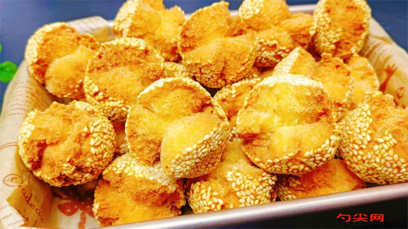注意事項:五成熱下鍋可避免芝麻球開裂過早或炸糊,炸制過程中需保持小火。裹芝麻后需輕揉緊實,否則炸制時易脫落。炸好的開口笑需瀝干油分,放涼后密封保存,防止受潮變軟。炸制時需小心熱油,避免燙傷。建議使用長柄工具翻動面團,并控制油量防止濺出。